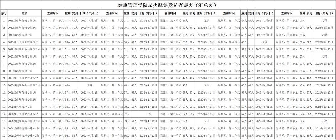 出勤率较好的班级有:2019级公共事业管理专业(出勤率100%)、2019级健康服务与管理专业(出勤率100%)、2020级药事管理专业(出勤率100%)、2020级健康服务与管理专业(出勤率100%)、2021级药事管理专业(出勤率100%)、2021级健康服务与管理专业(出勤率100%)、2021级药事管理专升本1班(出勤率100%)、2021级药事管理专升本2班(出勤率100%)。