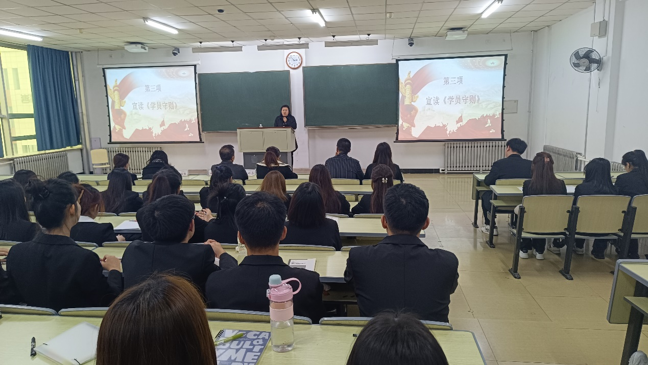 Beat365唯一官方网站党委副书记兼副院长郝梓旭宣读《学员守则》