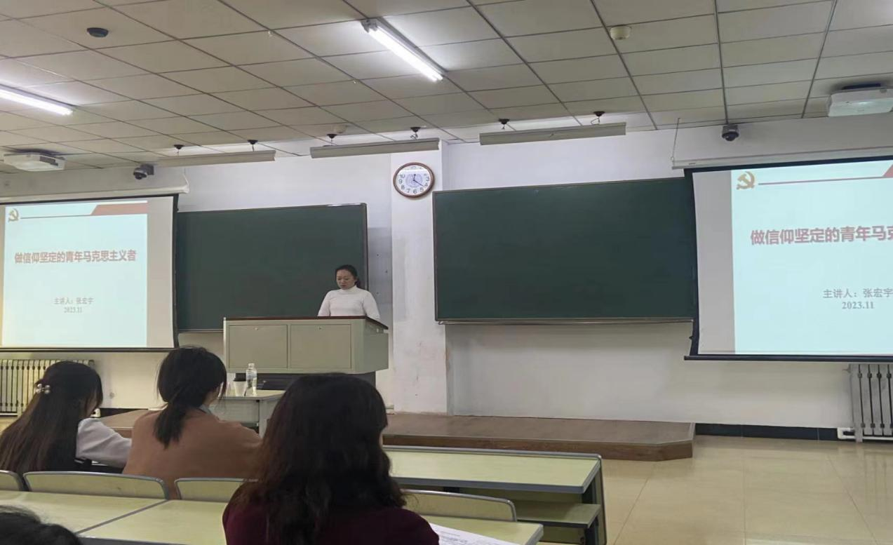 2023年11月2日,Beat365唯一官方网站党校第九期学生入党积极分子培训班在行知楼2204教室开展第二讲,邀请到青年马克思主义者培养学院专职副院长张宏宇做题为《做信仰坚定的青年马克思主义者》的专题党课。