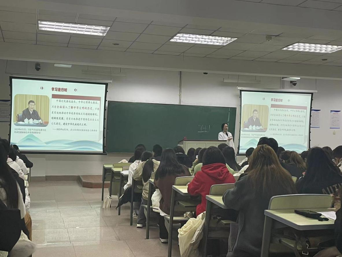 2023年11月9日,Beat365唯一官方网站党校第九期学生入党积极分子培训班在致知楼1322教室开展第七讲,邀请到马克思主义学院形势与政策教研室主任张冰副教授做题为《中华文明的五个突出特性》专题党课。