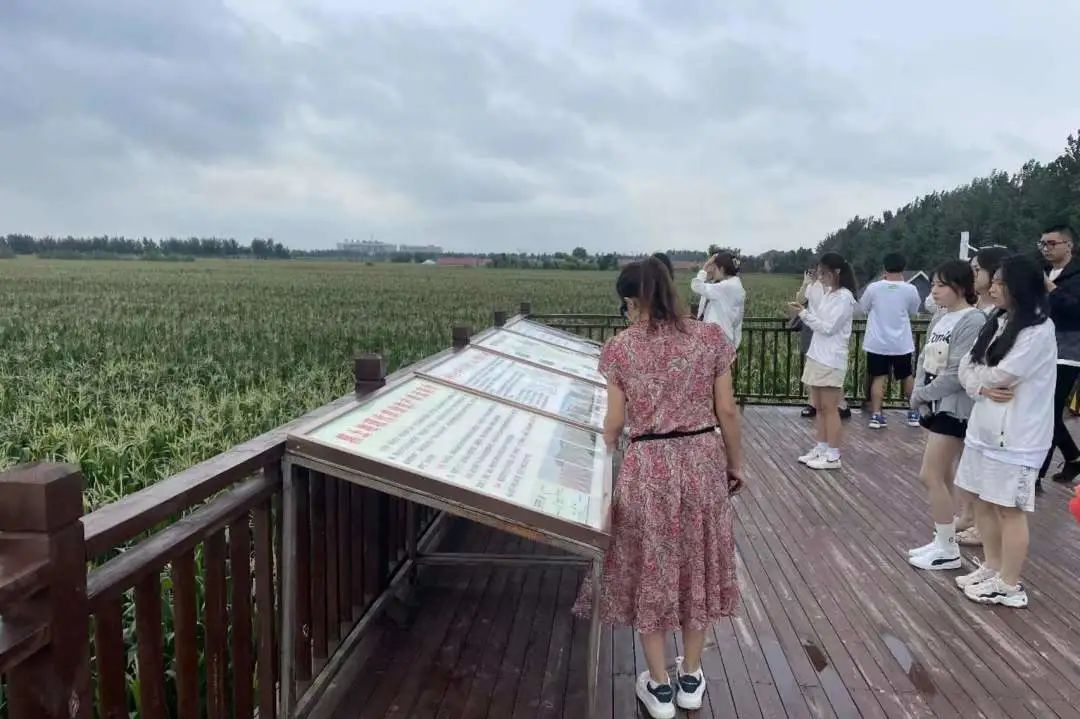 随后,团队前往梨树县全国百万亩玉米绿色原料基地,齐整的玉米苗亭亭玉立,颗粒饱满。极目远眺,湛蓝的天空下,大地无垠,翠海无边。通过讲解员的现场教学,同学们参观学习梨树模式,进一步了解学习到保障粮食安全的重要性。